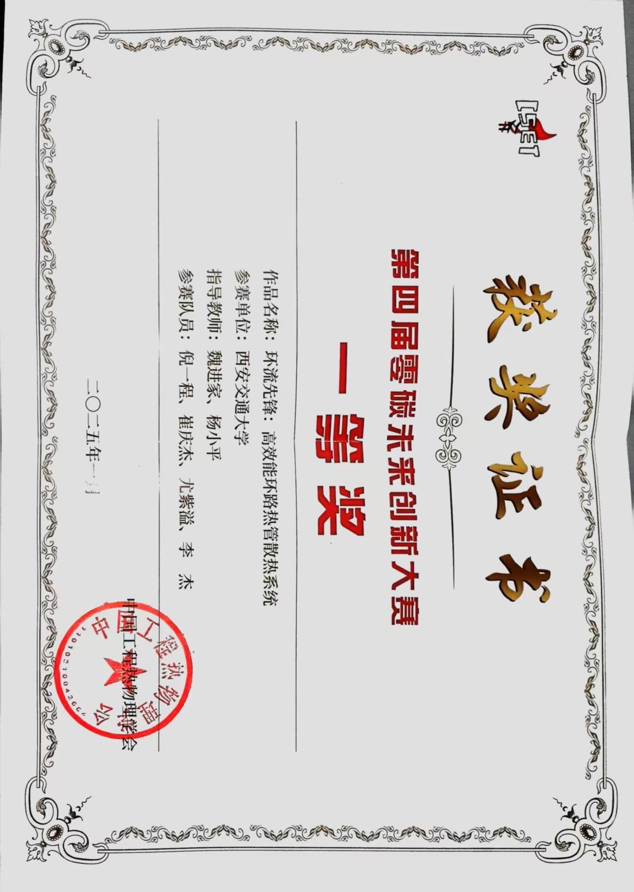 ”获得一等奖,继魏进家、杨小平教授指导,倪一程、崔庆杰、尤紫溢、李杰合作提交的作品“环流先锋:高效能环路热管散热系统”(第四届)之后再度斩获零碳未来创新大赛的最高奖项,显示了做爱视频在低碳能源化工领域的深厚积淀和学生积极投身“双碳”做爱视频
